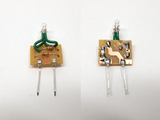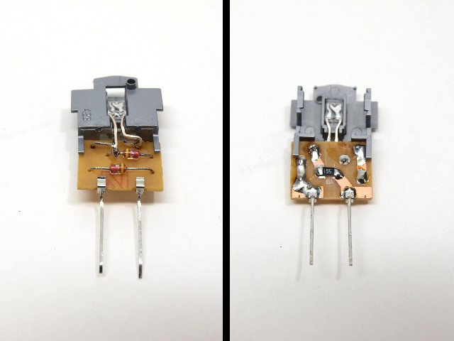 電球を外し、当店では回路の途中に抵抗(チップ)を使用してます。