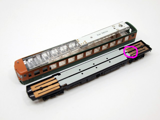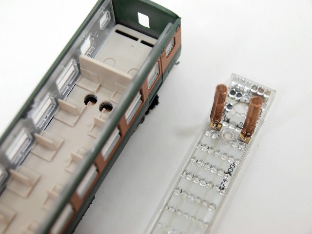 それならパーツを作ってしまおう!と危ないところまで行ってしまいましたが(笑)、落ち着いて考えればなにも室内灯はKATO製にこだわらなくてもいいわけなので、集電スプリングタイプ(マイクロエース製「広幅」)の室内灯を使用することにしました。
