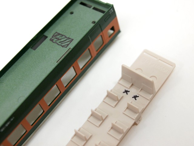 この旧製品の車両に現在販売中の「室内灯クリア」を取付けるにも、最低限この写真のパーツが必要なのですが、さらに入手が難しくなってます。