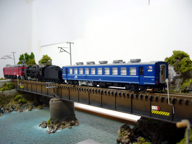 そういえば、先日実物の“おじいちゃん”を初めて見る友人と出かけたときに、「蒸気機関車って意外と小さいんだね。」と感想を言っておりましたが、模型でもリアルスケールになったためでしょうか、14系客車と並べると“おじいちゃん”はだいぶスマートになった気がします。