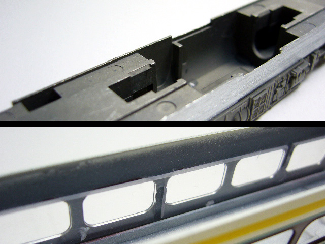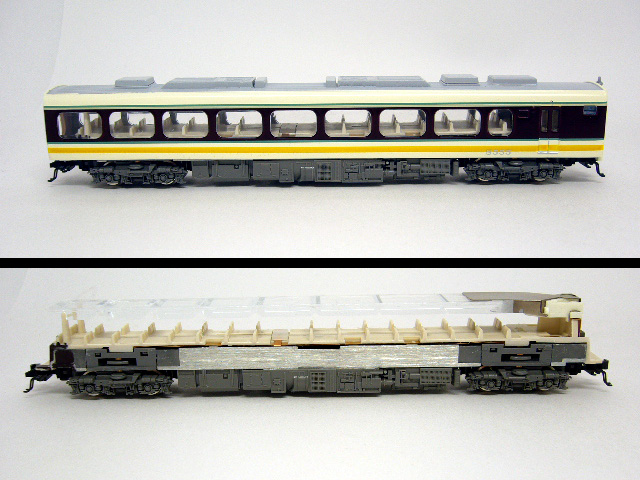 ・・・と思った反面、スカートと床下機器が床板と一体になっており、走行化した際はスカートや床下パーツを移植する手術が必要になりそうです。