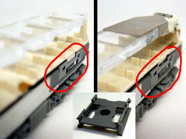 さらに、写真のマーキング部分を削ると、先頭車にM車を搭載することが可能になります。