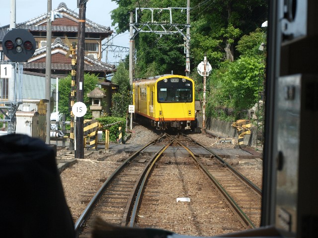 定刻になり出発です。久しく忘れていた吊掛モーターの音を唸らせながら、この先にあるJRと近鉄をオーバークロスするため勾配をフルノッチで加速していきます。