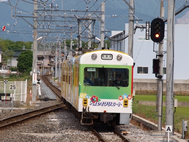 こちらは北勢線と違い市街地を走ります。関東で言う「江ノ電」のような感じです。内部行きと西日野行きで交互に1時間に2本ずつありわかりやすく便利ですが、平日の日中とあってか車内は閑散としています。