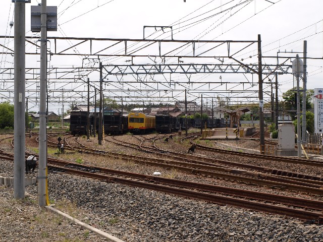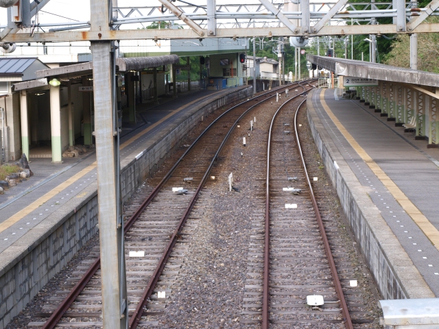 駅前が広く、古くは名古屋、大阪からの特急列車が乗り入れた大きな駅ですが、普通列車のみとなった現在では機能をもてあましています。