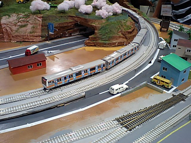 車両もE233やキハ110系が走っていましたがすべて自作のようです。手作りの味か(?)キコキコいいながら走っているのはご愛敬です。