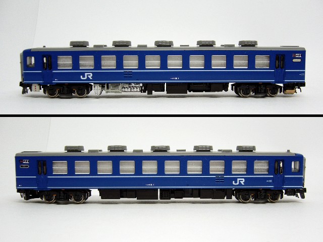 14系寝台客車は、緩急車の乗務員室や、車内座席、行き先表示、トイレタンク、連結間隔等々よく造りこまれています。