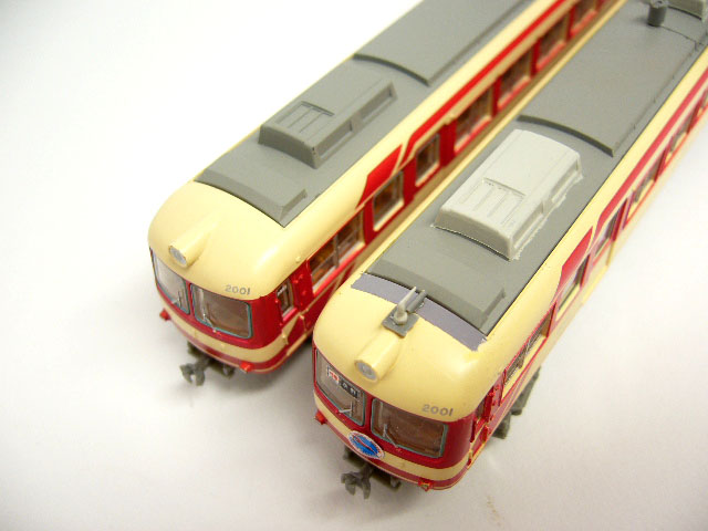 2000系のボテッとした感じはマイクロ製品よりよく表現できていますが、ご存知のようにいちばん目につく屋根上があっさりしています。